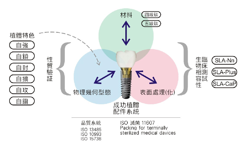 為達到最佳的植牙成效,不僅需要執刀醫師擁有高水準的能力和豐富的經驗,相對也要有高品質的植牙系統方能提高成功率。Anker 人工植牙系統,擁有高精度的生物力學設計及卓越的植體表面處理技術,讓執刀醫師可以輕鬆且安全地完成植牙手術,使患者能享用具有產品壽命長、手術成功率高以及美學等優點的植體。 Anker 人工植牙系統適用於所有類型的植牙手術,包含即拔即種、提早性、延遲性,一階段式及兩階段式的植牙手術。文獻證實,錐狀植體是全世界最成功的牙科植體設計,Anker 團隊在既有基礎下,經過無數的測試實驗後,開發出特殊的錐狀植體結構,是以類似自然牙根型體搭配上圓錐狀設計,具有極優異的切削能力與初期穩定性,目前已擁有各國專利。