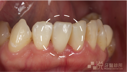 沒關係,我們藉由美學樹脂填補的方式,不只縮小了黑三角縫,也修正了舊有填補物顏色稍為沒那麼理想的小缺憾。