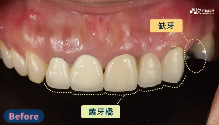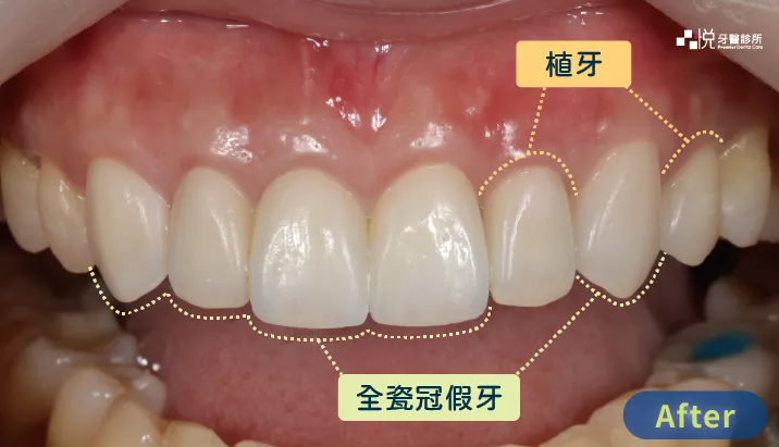 左圖 L 先生前牙即拔即種的 Astra 植體,癒合良好。