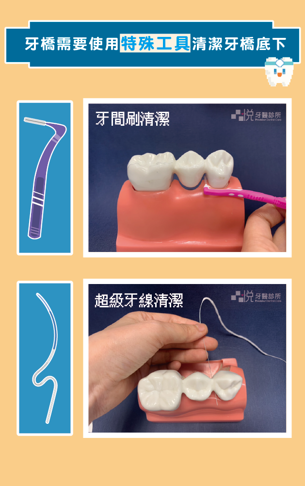 牙橋需要特別清潔牙橋底下以免蛀牙