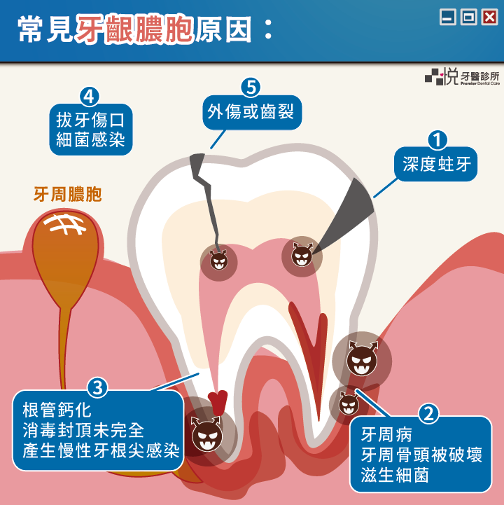 常見造成牙齦膿包的原因有: