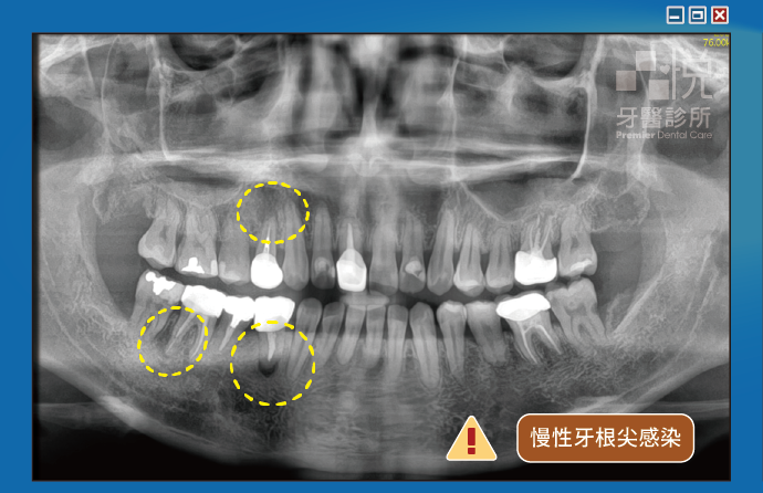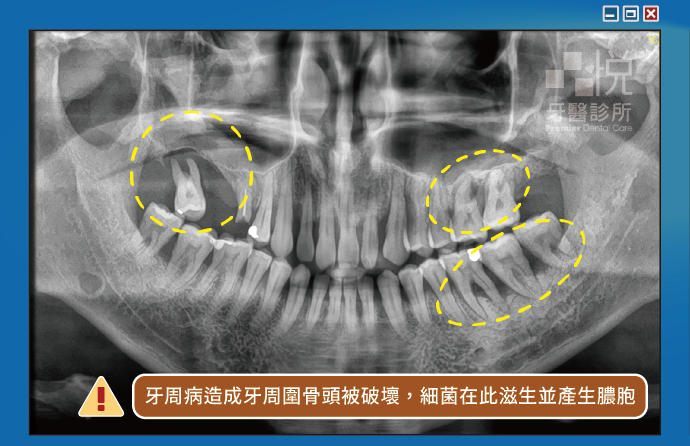 細菌在局部區域慢慢的孳生,可能造成反覆的膿包,持續破壞我們牙齒周圍的骨頭或變成囊腫。