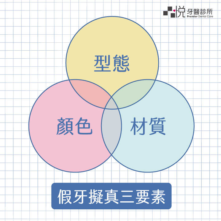 假牙擬真三要素:形態、材質、顏色,缺一不可。