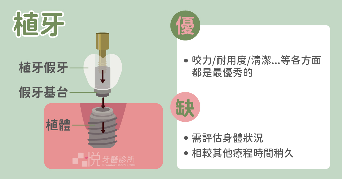 植牙是最符合自然人體的設計,不管是吃東西的方便度、好不好清、使用年限等等,都是最優秀的。植牙的十年成功率高達 95%,是非常優秀的治療方式。