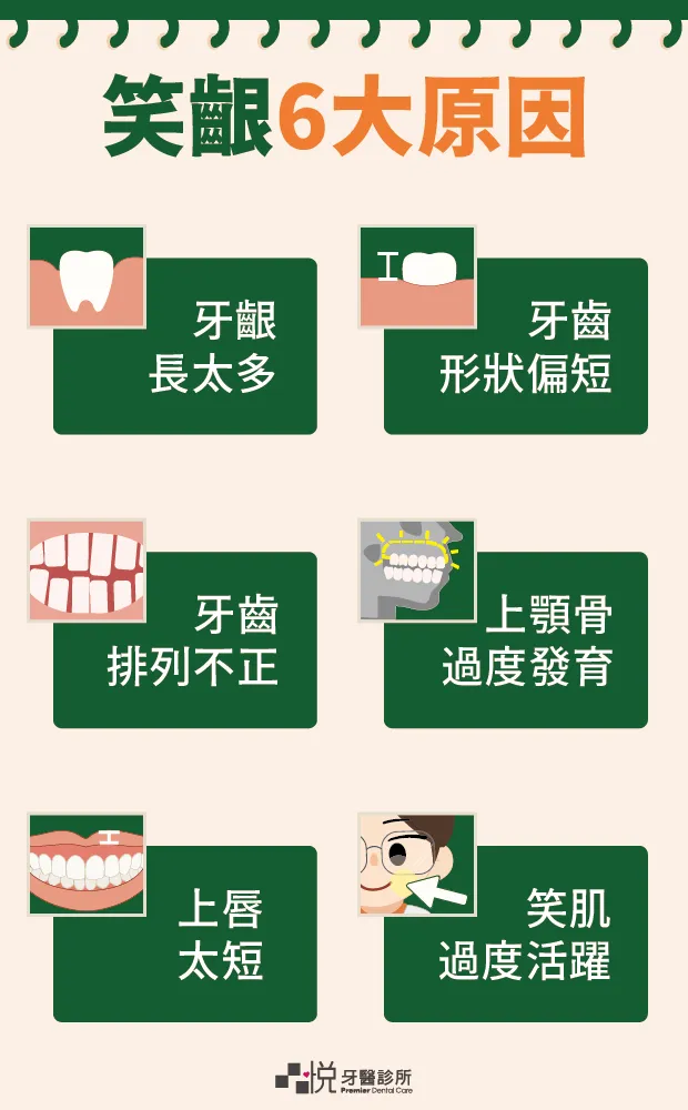 | 牙齒形狀短小 | 天生牙齒較短,牙齦相對較長,導致牙齦暴露較多。 |