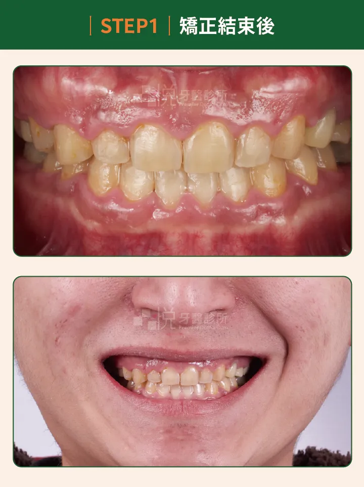 歷經兩年的矯正結束後,咬合及牙齒排列的問題獲得了很棒的改善。接下來終於輪到我這個阿兄出馬了 ~~~