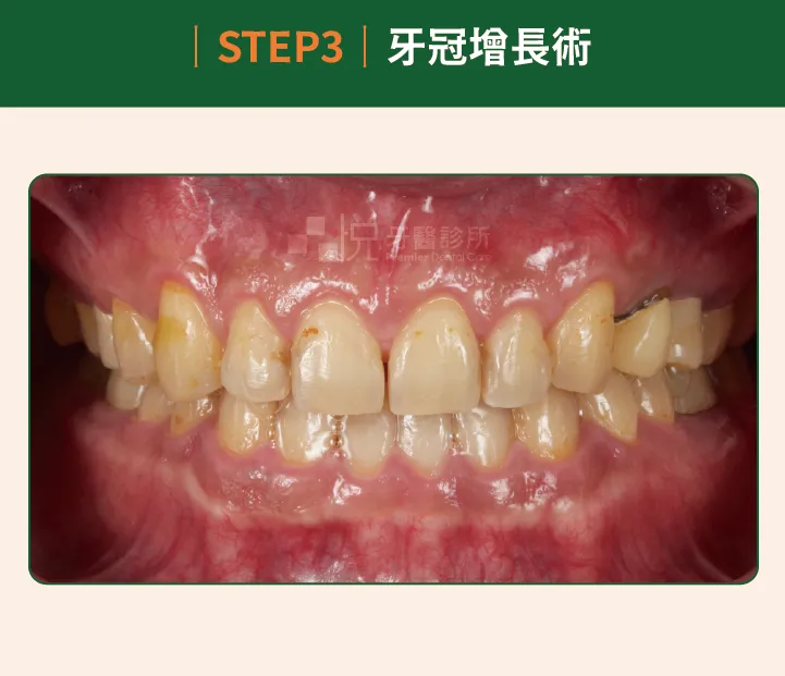 當牙冠過度被牙齦覆蓋,可選擇「牙冠增長術」改善。