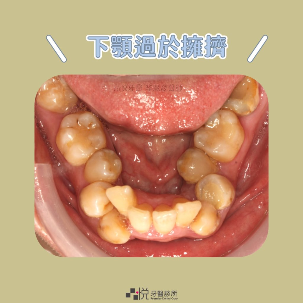 此位案例為上顎外凸、合併有缺牙及壞掉的牙齒,下顎則為嚴重齒列擁擠。