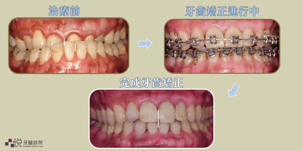 以本案例來說,原本有戽斗問題合併中線偏移許多,搭配矯正拔牙(右下排單顆牙齒)後,完成牙齒矯正獲得明顯的改善!
