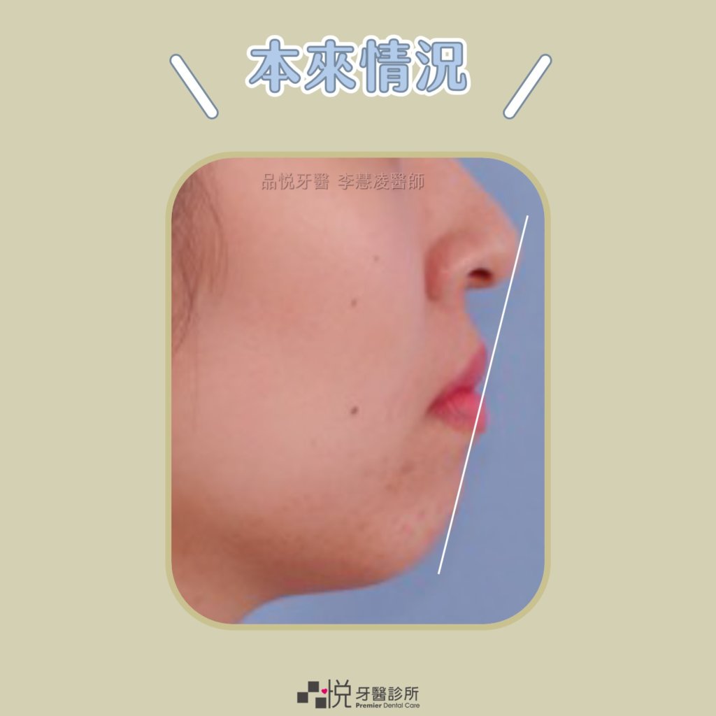 而東方人在臨床上很常遇到下巴後縮的,連帶會讓美觀線 E-Line 也往後退,所以就算是經過矯正治療把牙齒嘴唇都往內收了,嘴唇還是會突出線外。