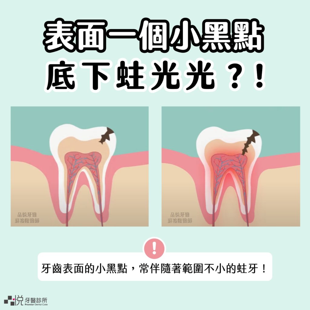 蛀牙看似表面一個小黑點,其實底下通通蛀光光?!