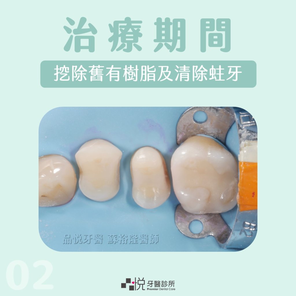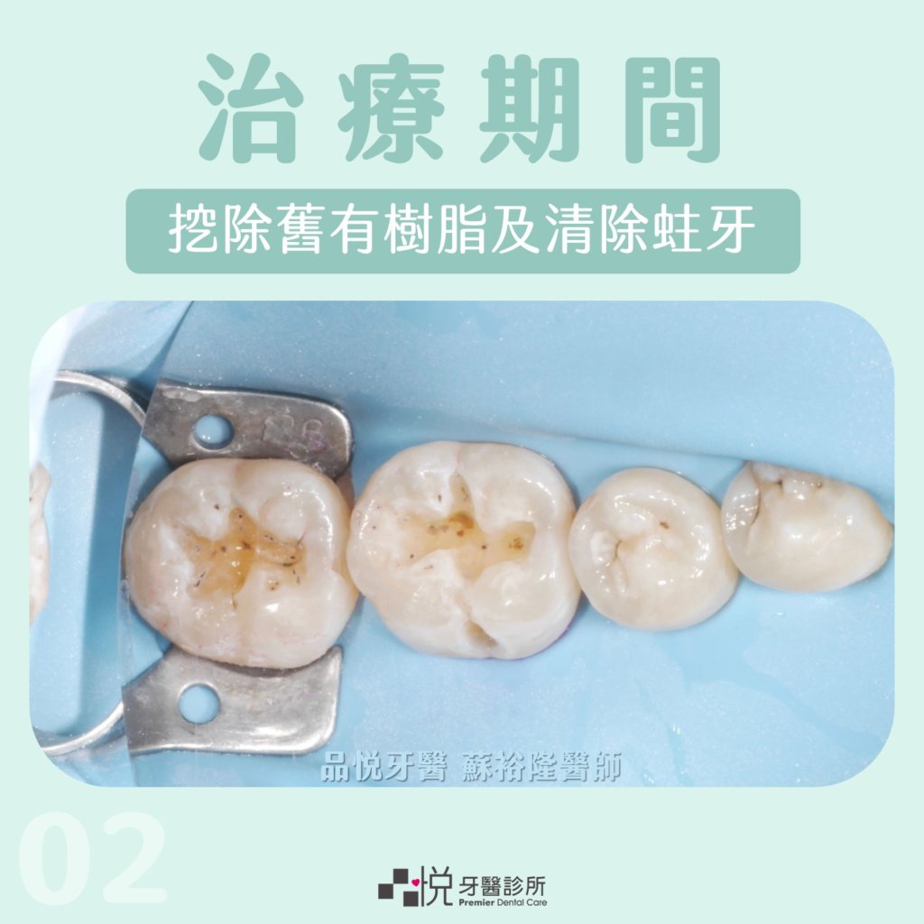 1. 舊有的樹脂填補拿掉,才能確保蛀牙完整看到