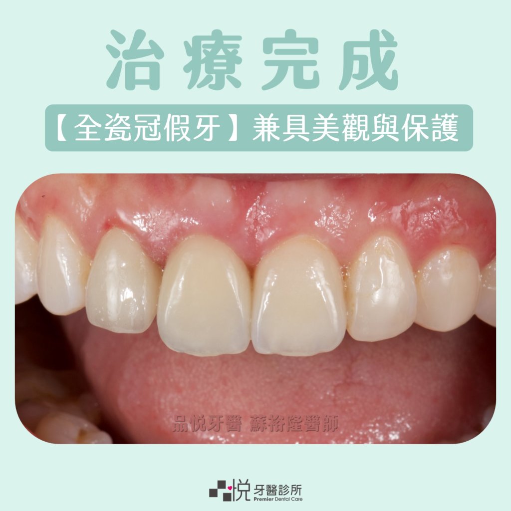 治療完成:以全瓷冠假牙兼具美觀與保護根管治療後的牙齒