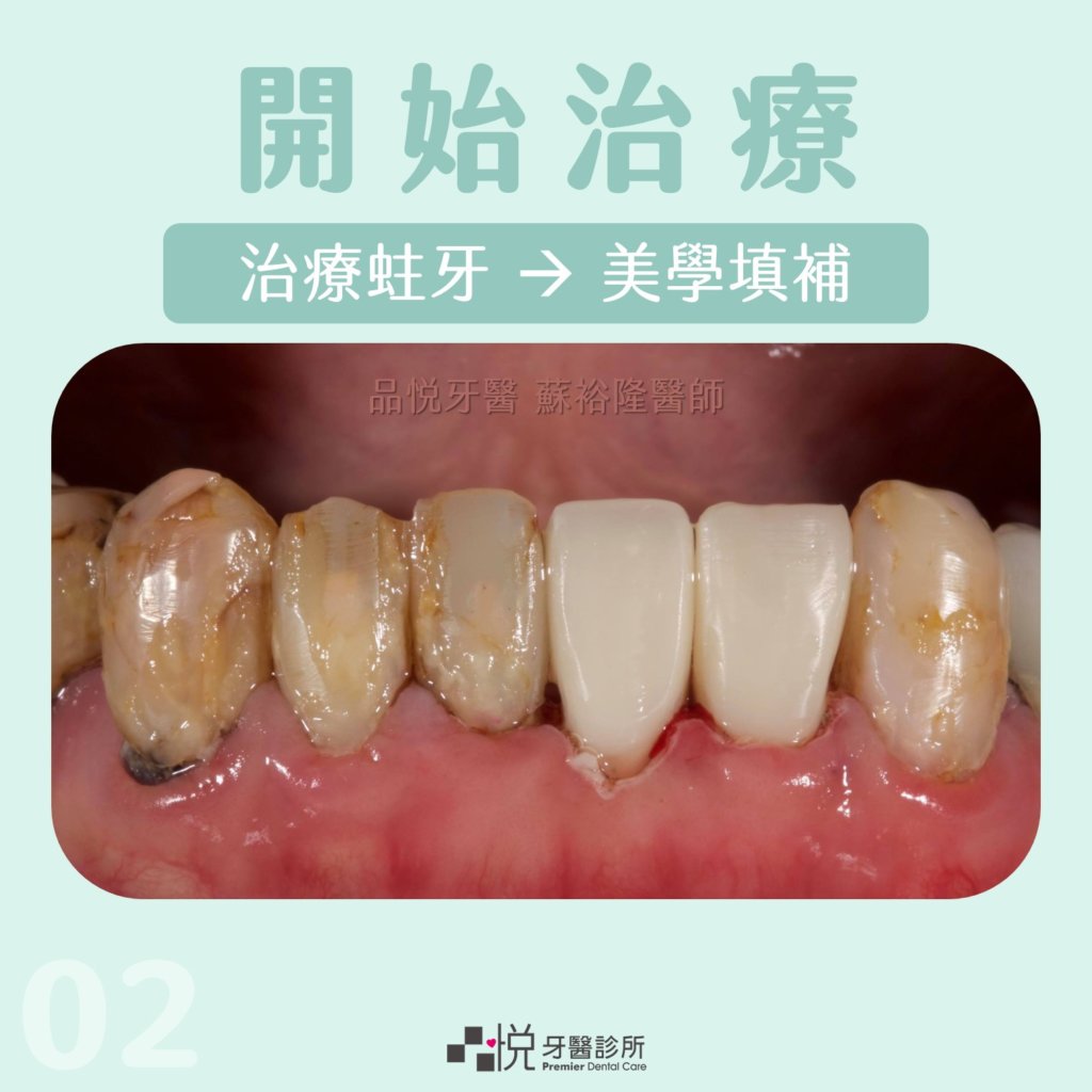 開始治療:逐步治療蛀牙,並搭配美學填補