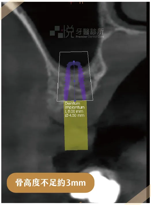 剩餘骨高度 4mm,使用「齒槽骨側介入法」