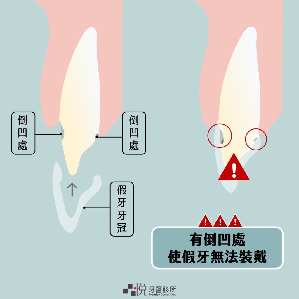 所有的陶瓷修復物,在裝戴的方向上是不能有倒凹存在的,為了讓陶瓷修復物可以順利裝戴,牙醫師就必須要修磨掉部分好的齒質,這就和最小侵犯性原則相牴觸。