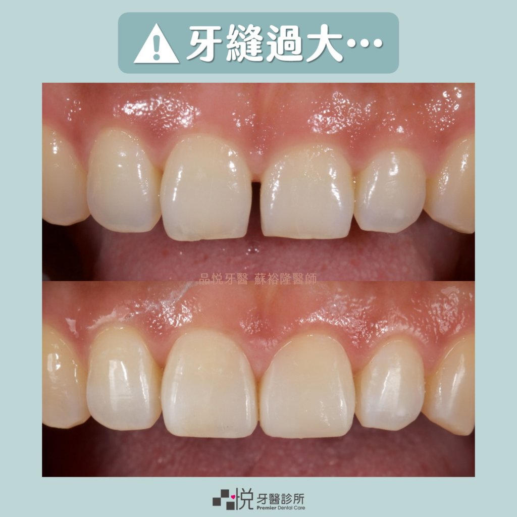 牙縫過⼤的情況樹脂填補是非常適合的適應症。