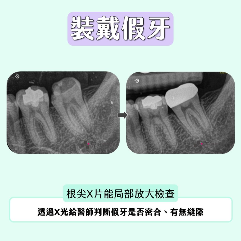 透過X光片為給醫師判斷假牙是否有密合、是否有無縫隙時需安排拍攝X片。