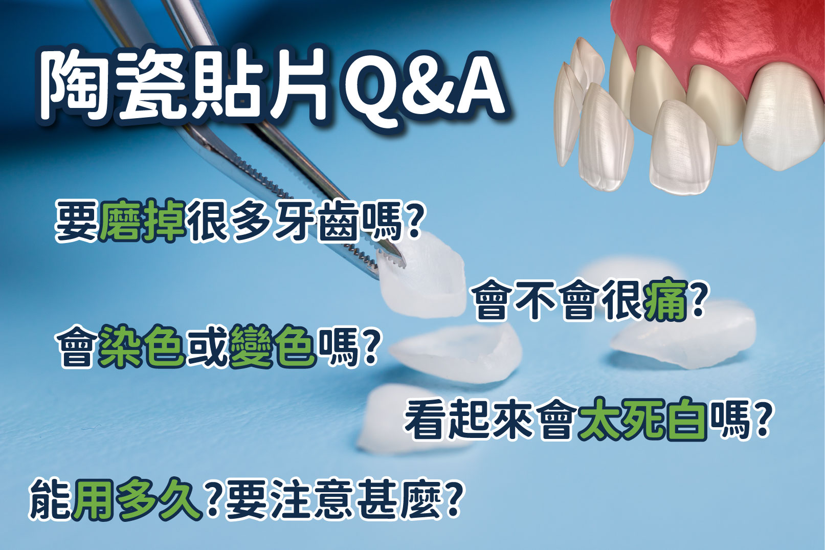 統整大家常有疑問的:會很痛嗎?要磨掉很多牙齒嗎?牙齒會不自然嗎?貼片會染色嗎?能用多久呢?