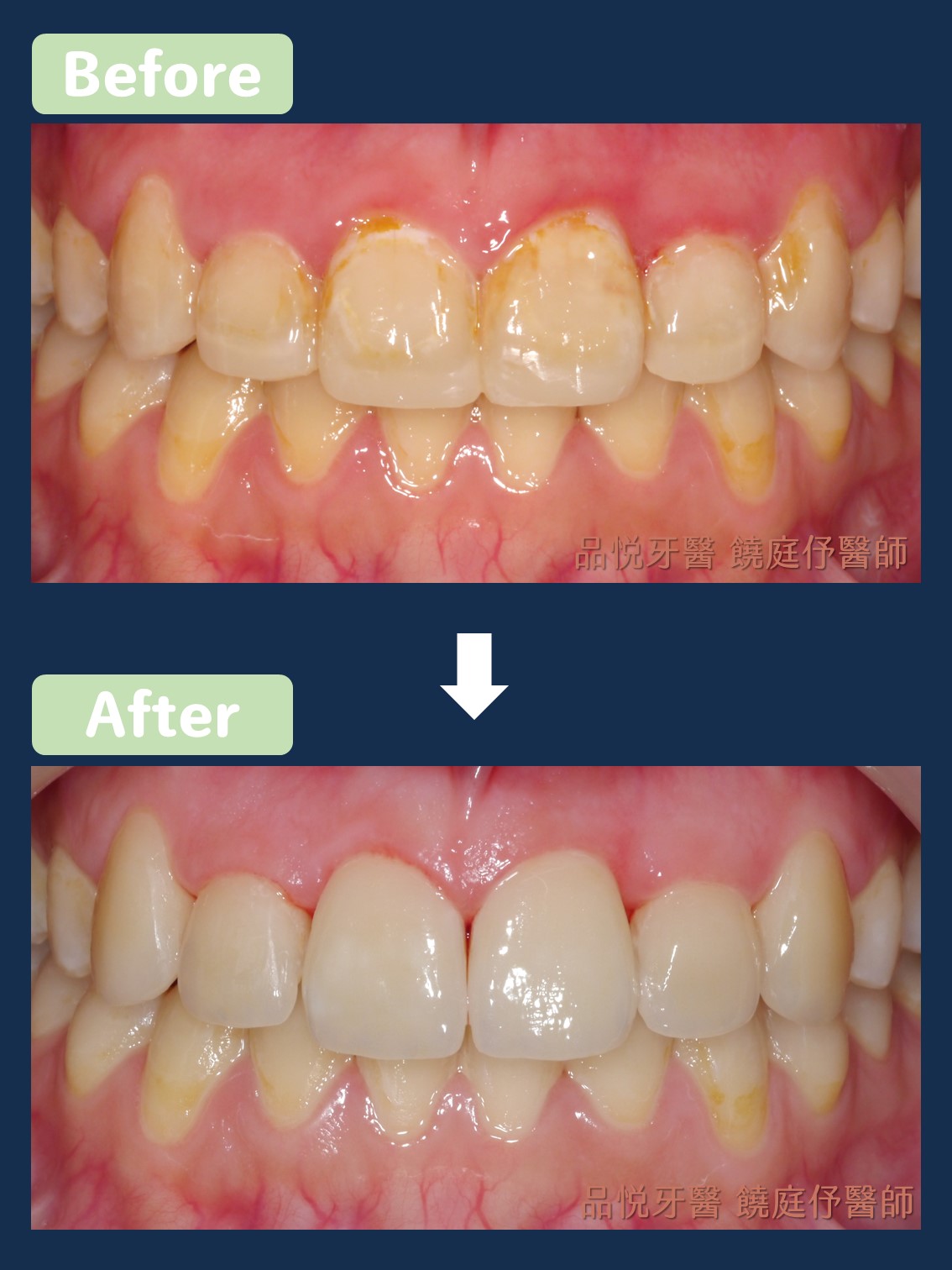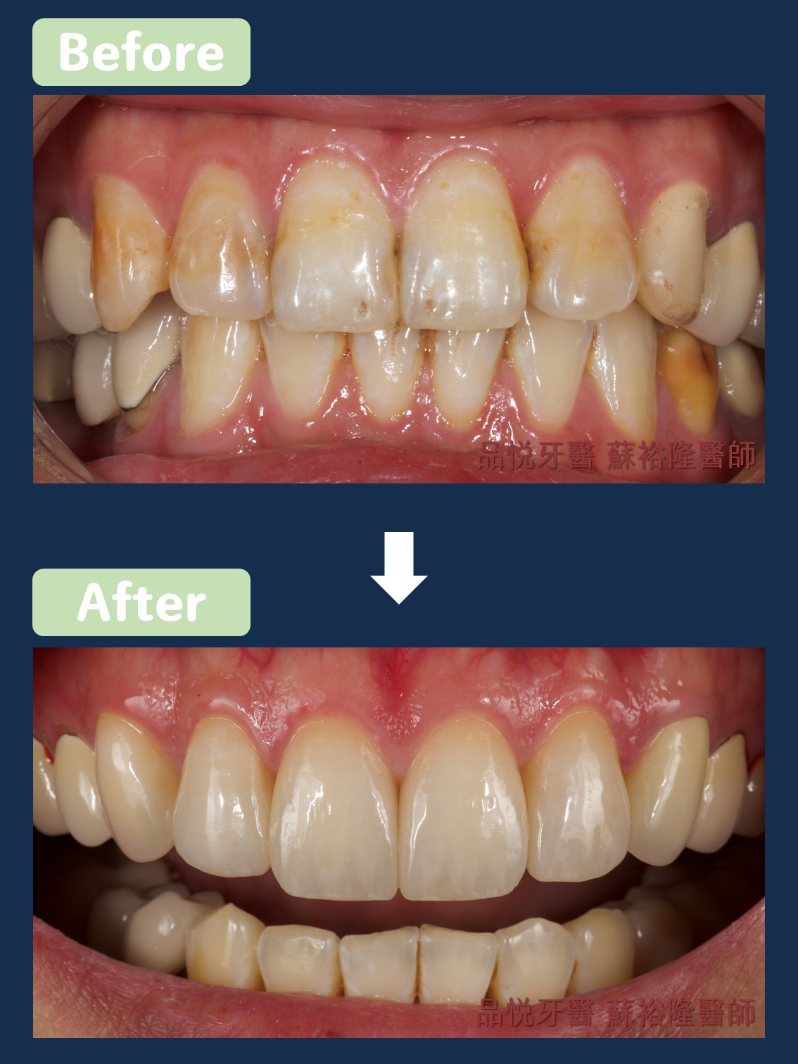 • 優良的陶瓷貼片美觀、不死白,有自然牙的透光性,能同時達到牙齒美白、調整形狀的作法