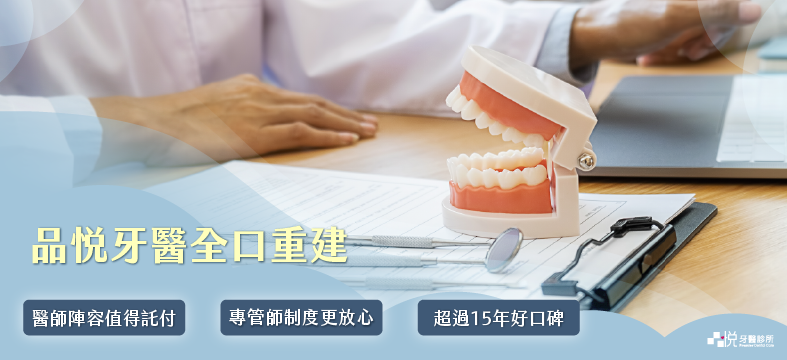 品悅牙醫擁有十多位專業醫師團隊,其中每位醫師各有特長與專精項目,包含植牙手術、牙周科、假牙科、矯正科等等,透過全口重建期間交給各科別醫師達到最全面性的治療成果。