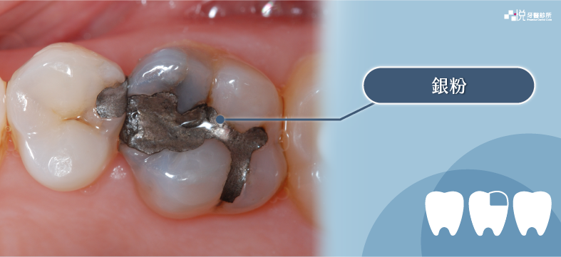 早年補牙會使用「銀粉」,銀粉填補後會因為汞離子的釋放,而讓補牙處漸漸變黑,銀粉無法和牙齒真正密合,容易有膨脹問題,可能造成牙齒結構的破壞,並且對於銀粉是否有人體毒性仍未有定論,部分歐洲國家已禁止使用銀粉。