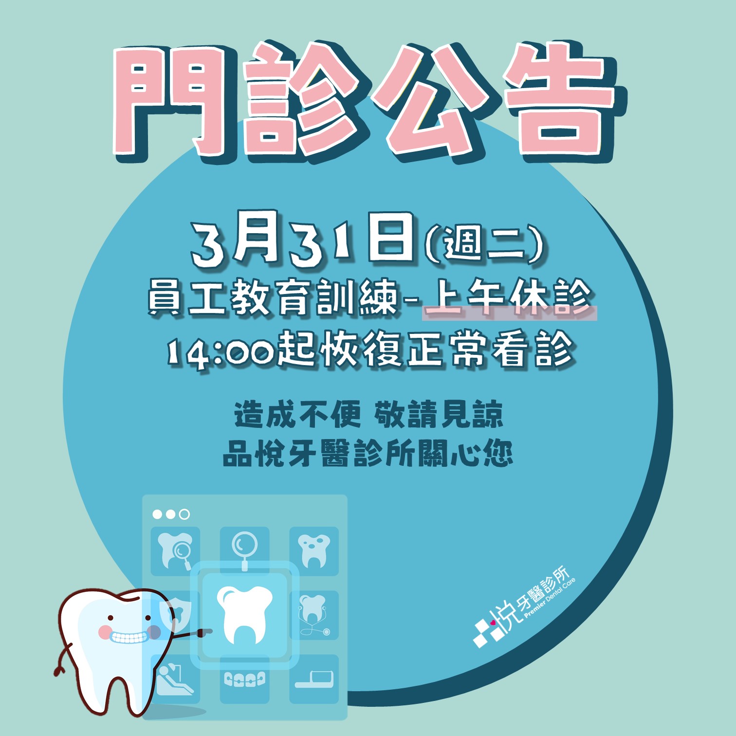 9:30-13:00員工教育訓練休診