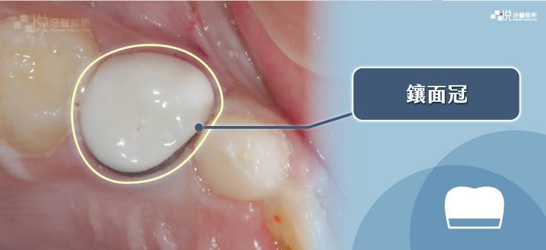 鑲面冠的內層為醫療級不鏽鋼金屬,最外層為高硬度的樹脂顏色接近白色,鑲面冠的內層金屬對牙齒做全包式保護,因為為兩層材質,會需要修磨量較多,會較建議應用於根管治療後的乳牙。