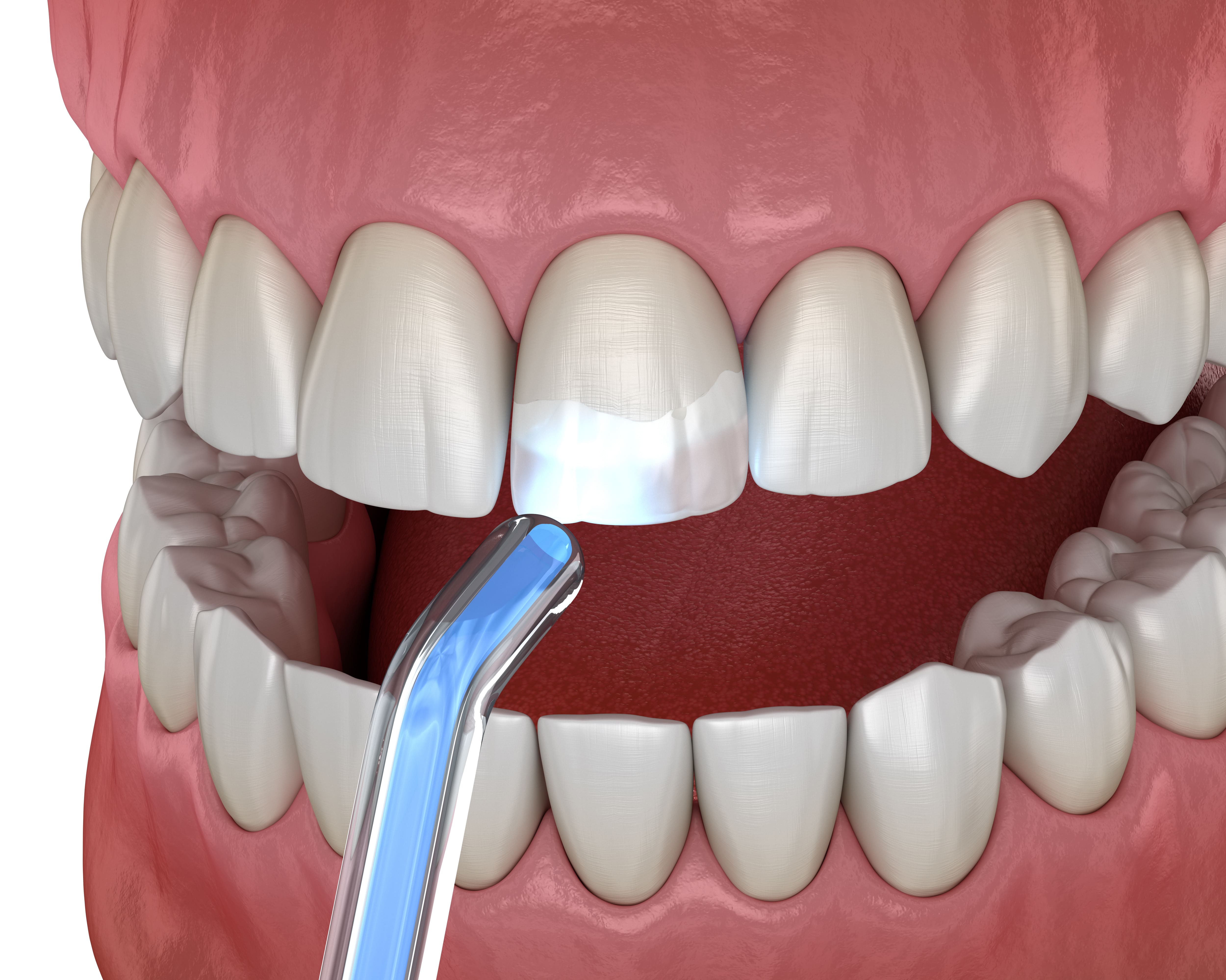 完整移除蛀牙、表面徹底清潔,以確保美學樹脂的黏著成功率
